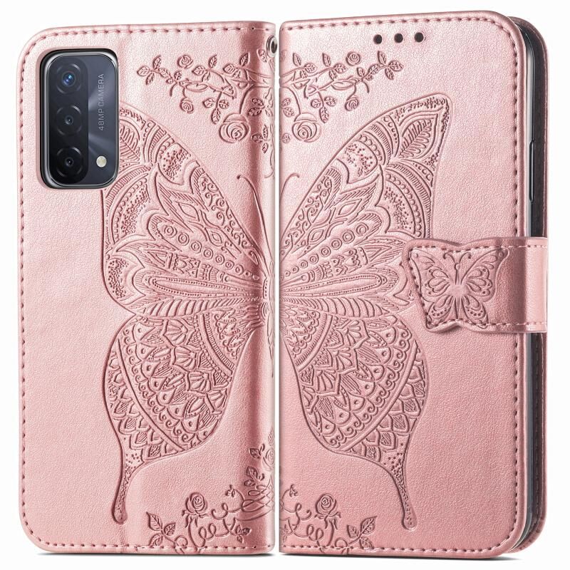 Για OPPO A93 πεταλούδα αγάπη λουλούδι ανάγλυφο οριζόντια Flip δερμάτινη θήκη με βραχίονα & Υποδοχή κάρτας & πορτοφόλι & Lanyard (Rose Gold)