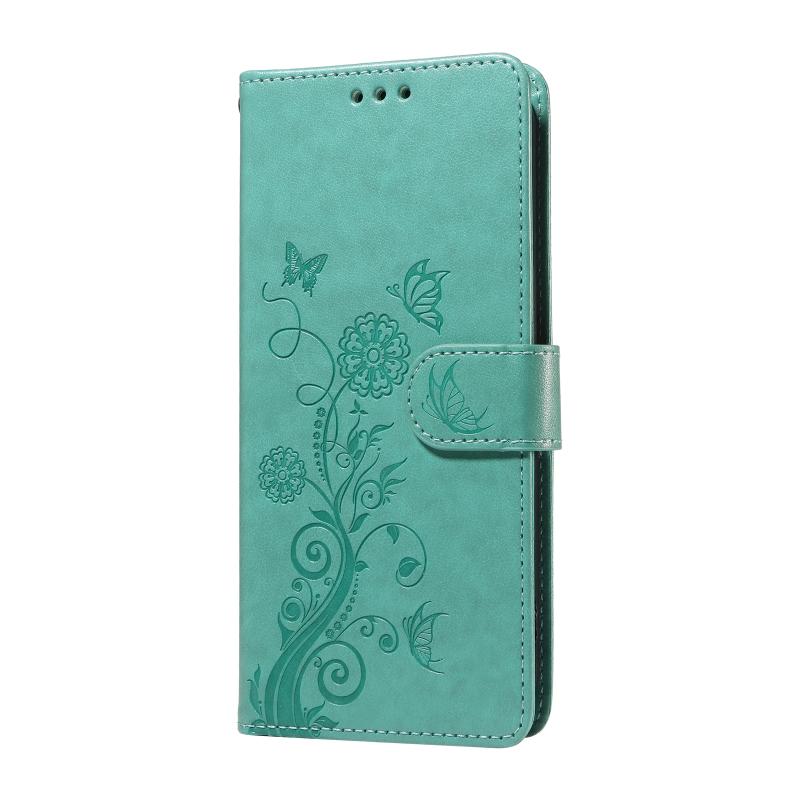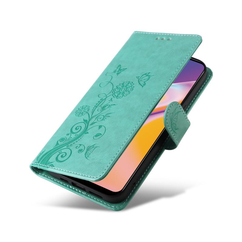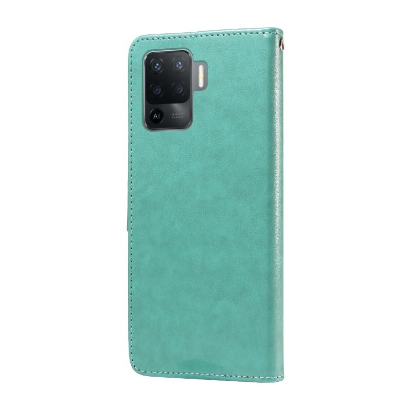 For OPPO A94 4G / 5G / A95 5G / F19 Pro Embossed Butterfly Flowers Leather Phone Case(Green)