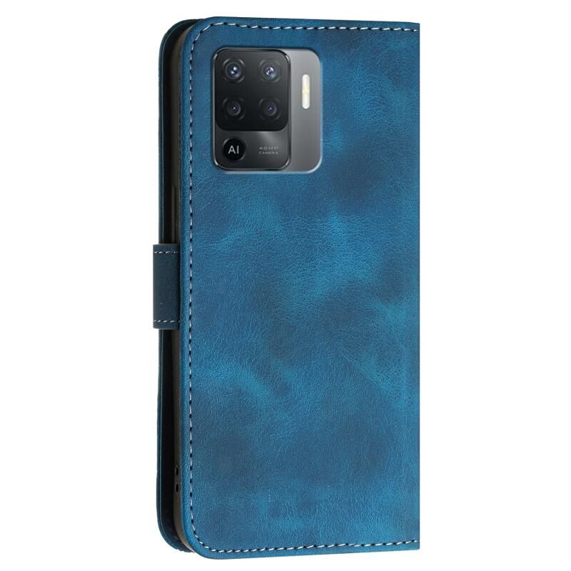 Θήκη τηλεφώνου από δέρμα με ανάγλυφο σχέδιο πλέγματος και πεταλούδας για OPPO A94 4G / F19 Pro 4G με κορδόνι (Σκούρο Μπλε)