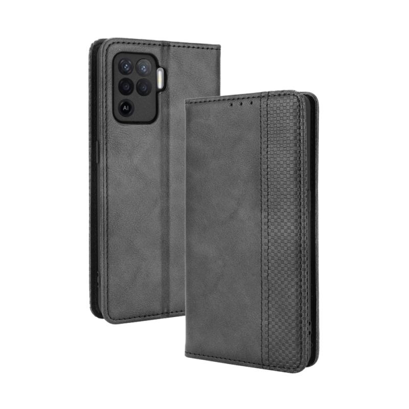 Θήκη δέρματος οριζόντιας αναδίπλωσης με μαγνητικό κούμπωμα, υφή Crazy Horse Retro για OPPO A94 4G / F19 Pro 4G / Reno5 F με βάση στήριξης & υποδοχές καρτών & κορνίζα φωτογραφιών (Μαύρο)