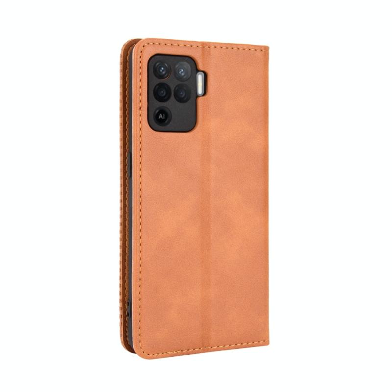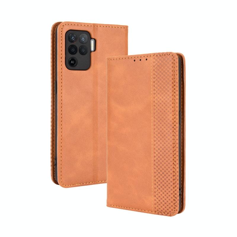 For OPPO A94 4G / F19 Pro 4G / Reno5 F Magnetic Buckle Retro Crazy Horse Texture Horizontal Flip Leather Case with Holder & Card Slots & Photo Frame(Brown)