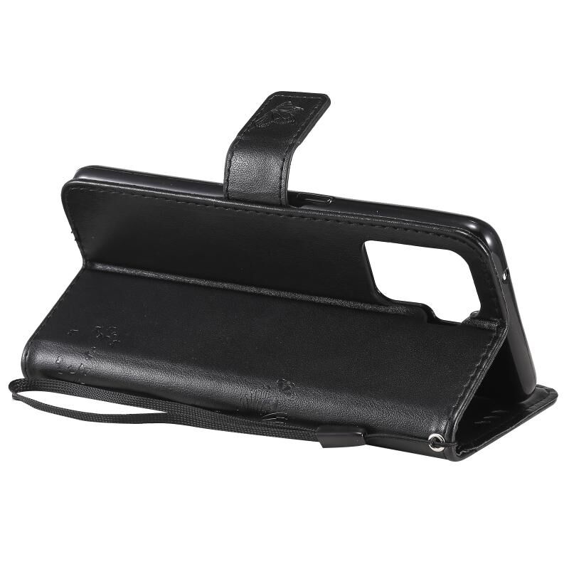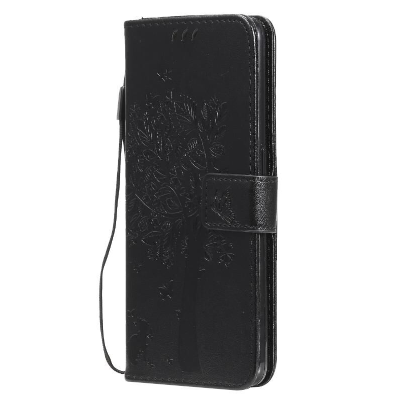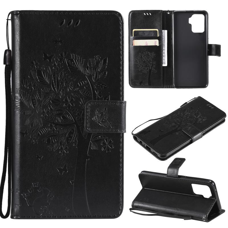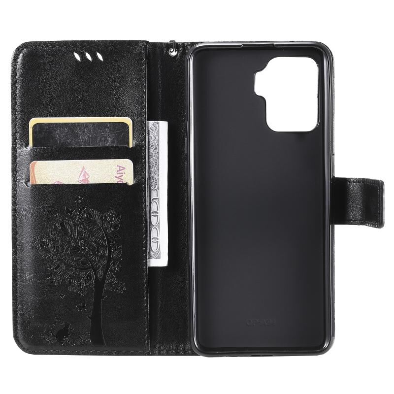 Θήκη για OPPO A94 4G / F19 Pro / Reno 5F με σχέδιο Δέντρου & Γάτας, εκτυπωμένη με θερμοτύπωση, οριζόντια αναδιπλούμενη από δερματίνη PU με βάση στήριξης & θήκες καρτών & πορτοφόλι & κορδόνι (Πράσινο)