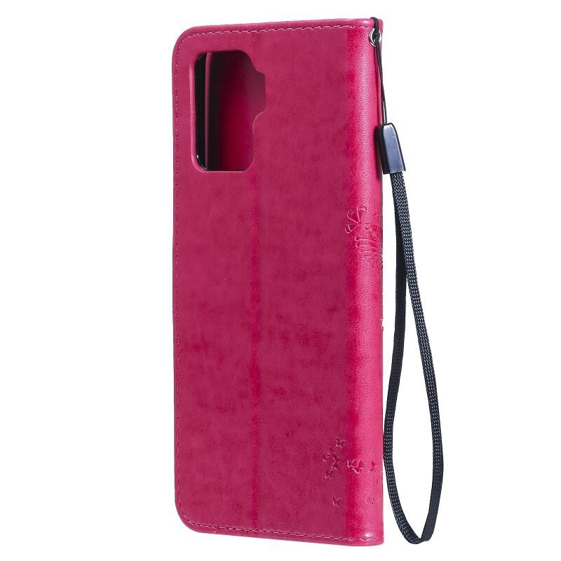 Θήκη για OPPO A94 4G / F19 Pro / Reno 5F με σχέδιο Δέντρου & Γάτας, εκτυπωμένη με θερμοτύπωση, οριζόντια αναδιπλούμενη από δερματίνη PU με βάση στήριξης & θήκες καρτών & πορτοφόλι & κορδόνι (Πράσινο)