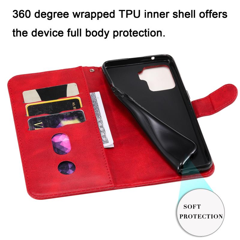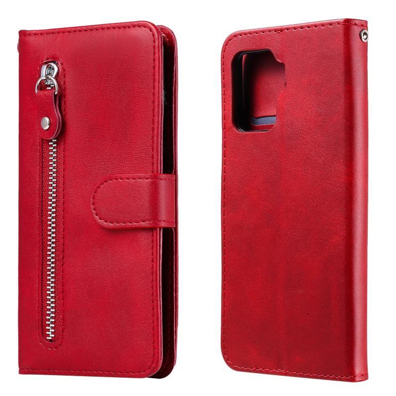 Θήκη δέρματος οριζόντιας αναδίπλωσης με υφή μοσχαριού, φερμουάρ, βάση στήριξης και θήκες για κάρτες & πορτοφόλι για OPPO A94 4G / F19 Pro / Reno5 F (Καφέ)
