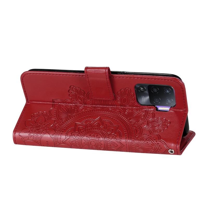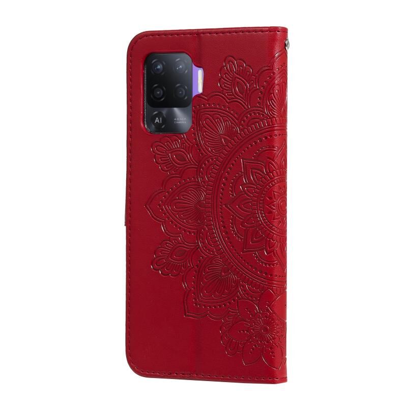 Για OPPO A94 4G / F19 Pro / Reno5 F / Reno5 Lite 7-πέταλα λουλούδια ανάγλυφο μοτίβο οριζόντια Flip PU δέρμα υπόθεση με κάτοχο & υποδοχές για κάρτες & πορτοφόλι & πλαίσιο φωτογραφιών (Κόκκινο)
