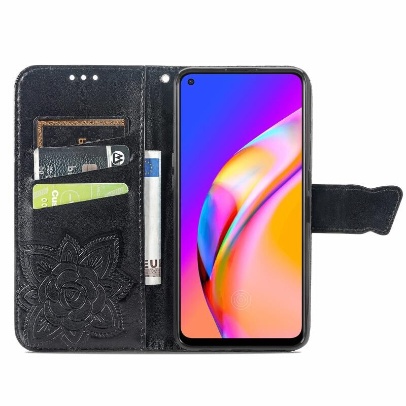 Για OPPO A94 4G / F19 Pro / Reno5 Lite πεταλούδα αγάπη λουλούδια ανάγλυφο οριζόντια Flip δερμάτινη θήκη με κάτοχο & υποδοχές για κάρτες & πορτοφόλι & Lanyard (Μαύρο)