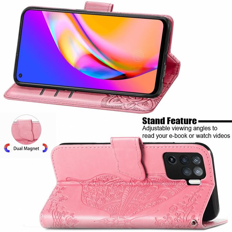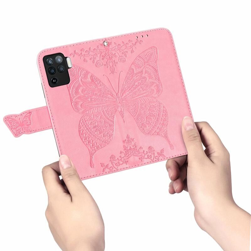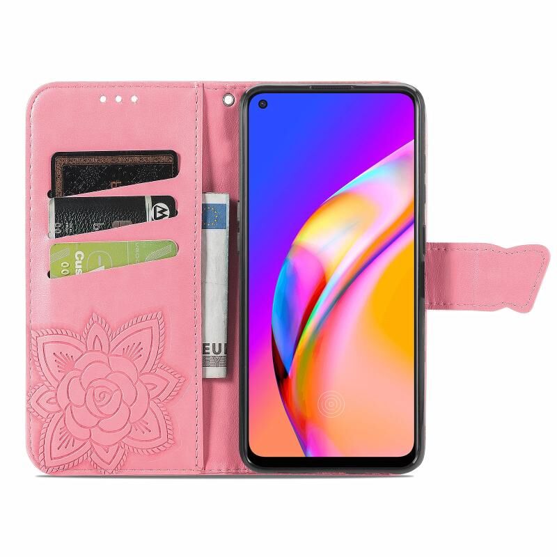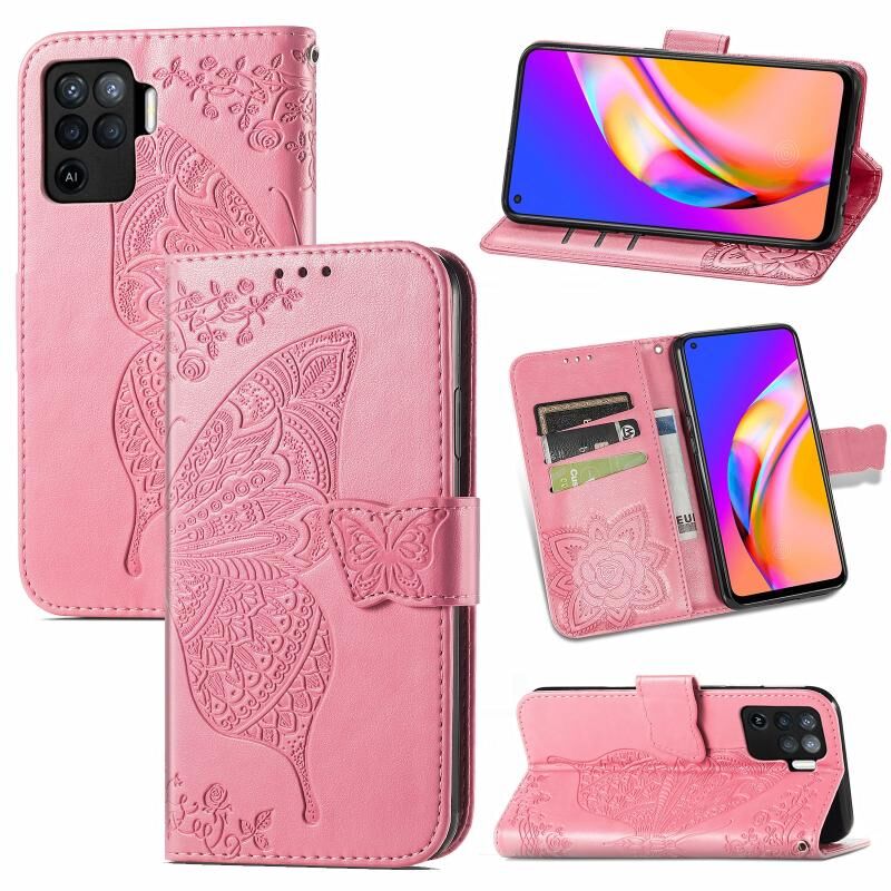 Για OPPO A94 4G / F19 Pro / Reno5 Lite πεταλούδα αγάπη λουλούδια ανάγλυφο οριζόντια Flip δερμάτινη θήκη με κάτοχο & υποδοχές για κάρτες & πορτοφόλι & Lanyard (ρόζ)