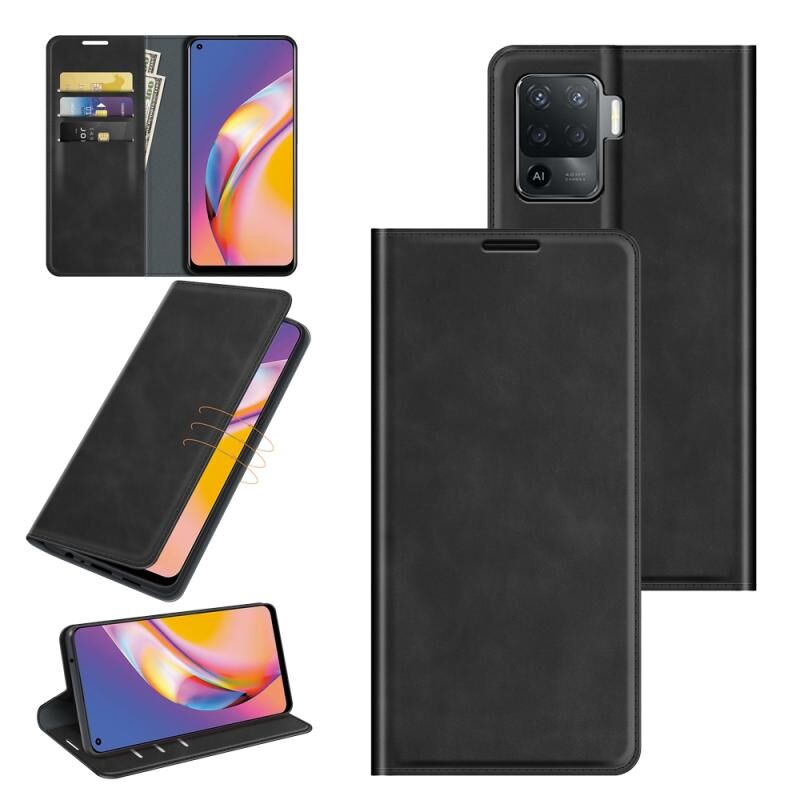Για OPPO A94 4G / F19 Pro / Reno5 Lite Retro-skin Business Μαγνητική δερμάτινη θήκη αναρρόφησης με θήκη & υποδοχές καρτών & πορτοφόλι (Μαύρο)