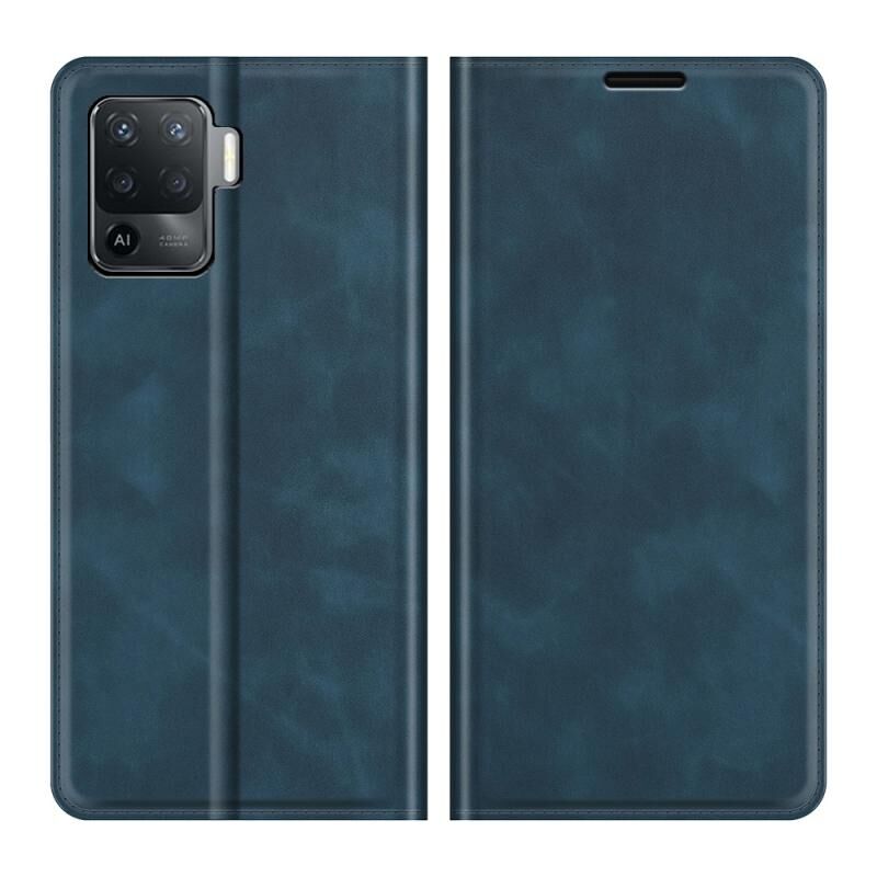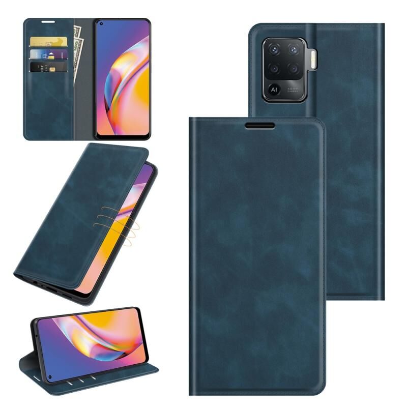 Για OPPO A94 4G / F19 Pro / Reno5 Lite Θήκη δέρματος με μαγνητική απορρόφηση σε ρετρό στυλ, με βάση στήριξης & υποδοχές καρτών & πορτοφόλι (Σκούρο μπλε)