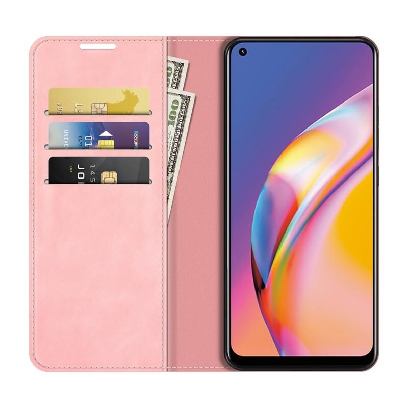 Για OPPO A94 4G / F19 Pro / Reno5 Lite Retro-skin Business Μαγνητική δερμάτινη θήκη αναρρόφησης με θήκη & υποδοχές καρτών & πορτοφόλι (ρόζ)