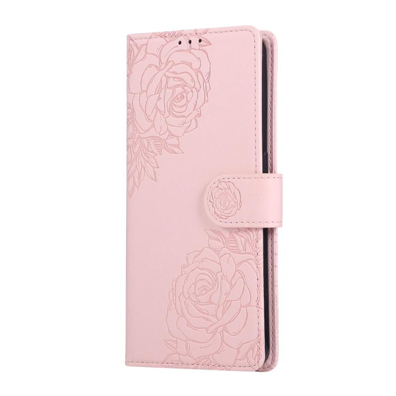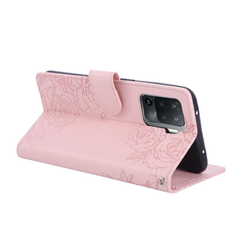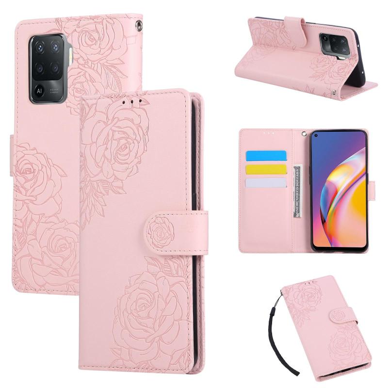 For OPPO A94 4G / F19 Pro Rose Flower Embossed 3-Card Slots Leather Phone Case(Pink)