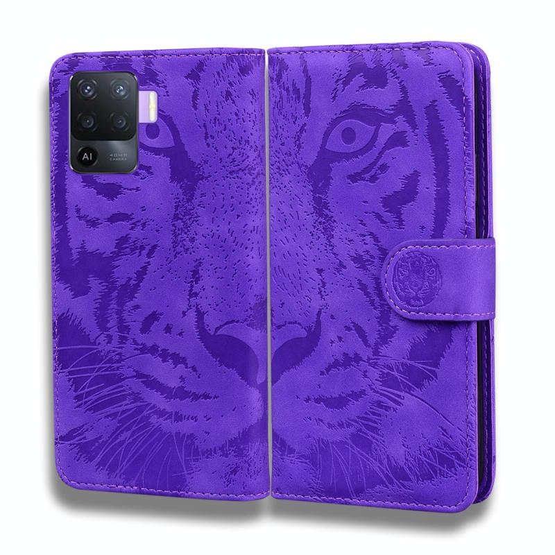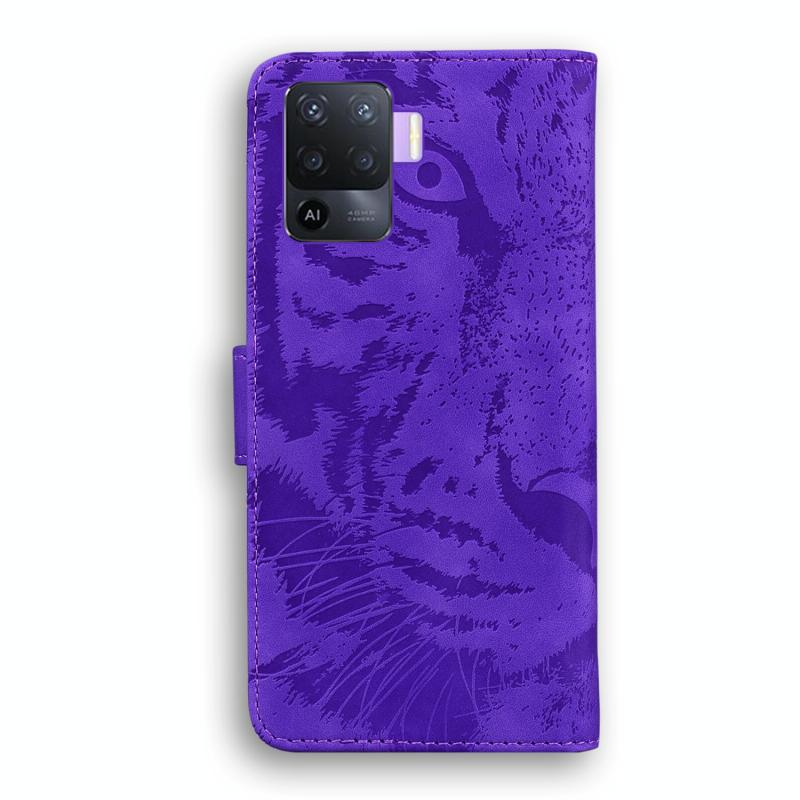 Θήκη δέρματος οριζόντιας αναδίπλωσης με ανάγλυφο σχέδιο τίγρης για OPPO A94 4G / F19 Pro με βάση στήριξης & υποδοχές καρτών & πορτοφόλι (Καφέ)