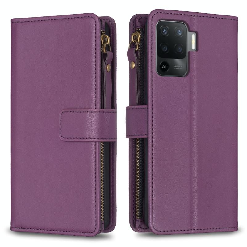 Για OPPO A94 4G / Reno5 F / F19 Pro Θήκη Τηλεφώνου από Δέρμα με Γυριστή Πλάτη και 9 Θήκες Καρτών (Σκούρο μωβ)