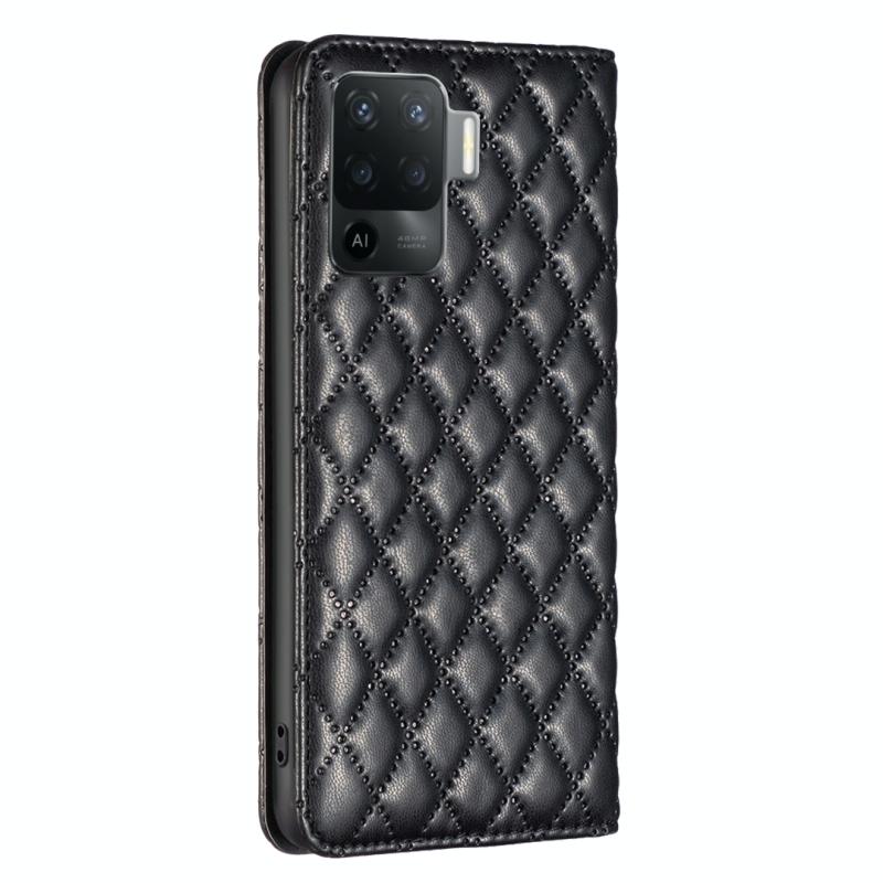 Θήκη τηλεφώνου τύπου flip από δέρμα με μαγνητικό σχέδιο διαμαντένιο πλέγμα για OPPO A94 4G / Reno5 F / F19 Pro (Μαύρο)