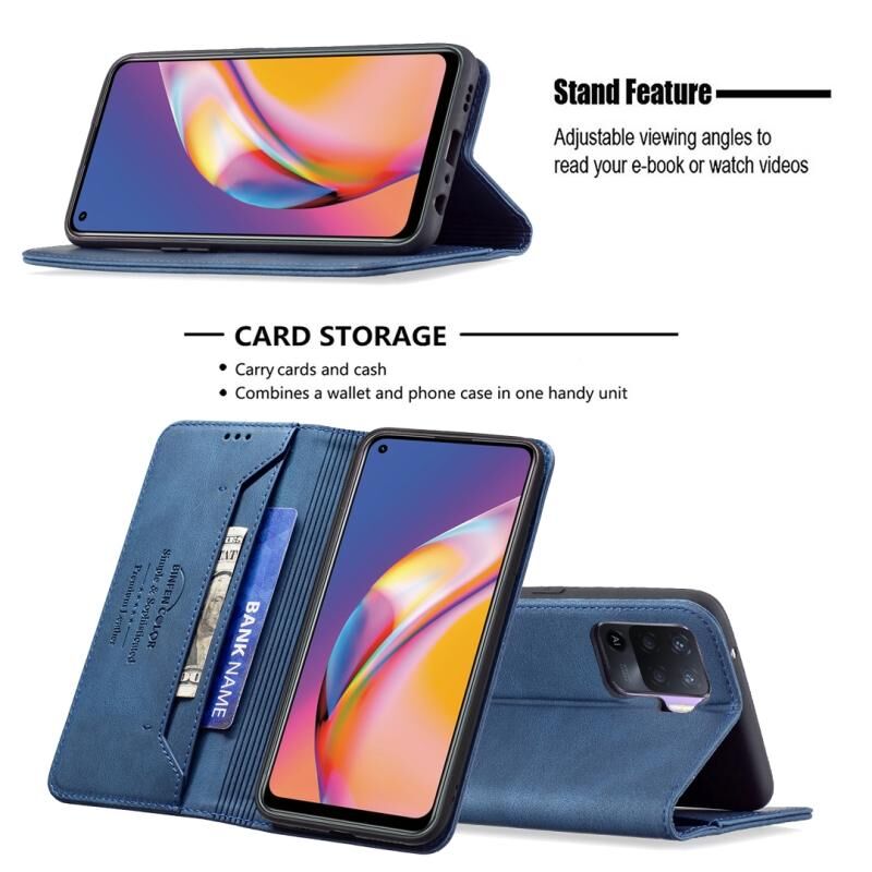 Για OPPO A94 4G / Reno5 / F19 Pro Μαγνητικό RFID Blocking Anti-Theft Δερμάτινη θήκη με θήκη & υποδοχές καρτών & πορτοφόλι (Μπλε)