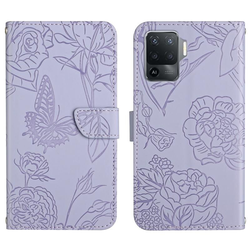Θήκη τηλεφώνου από δέρμα με ανάγλυφο σχέδιο πεταλούδας και παιώνιας για OPPO A94 4G (Κόκκινο)