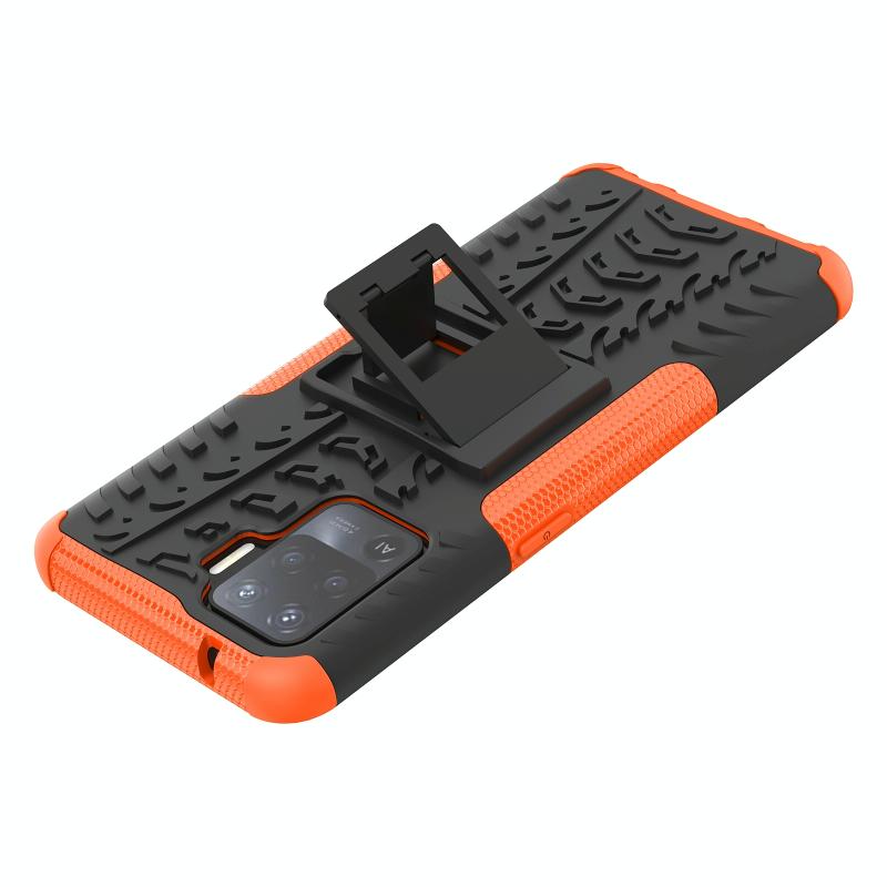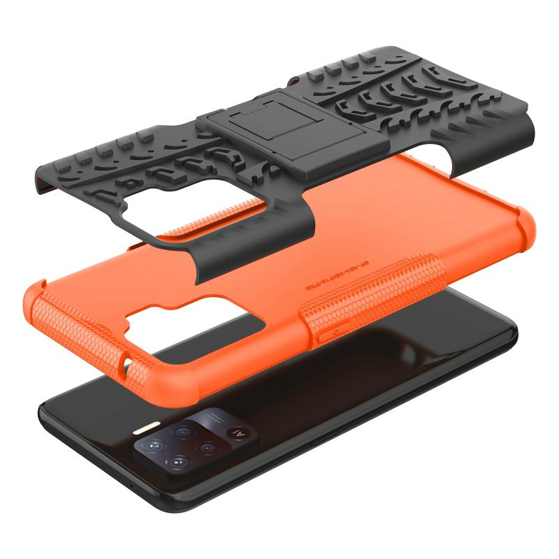 Θήκη προστασίας για OPPO A94 4G με υφή ελαστικού, αντικραδασμική από TPU+PC με βάση στήριξης (Πορτοκαλί)