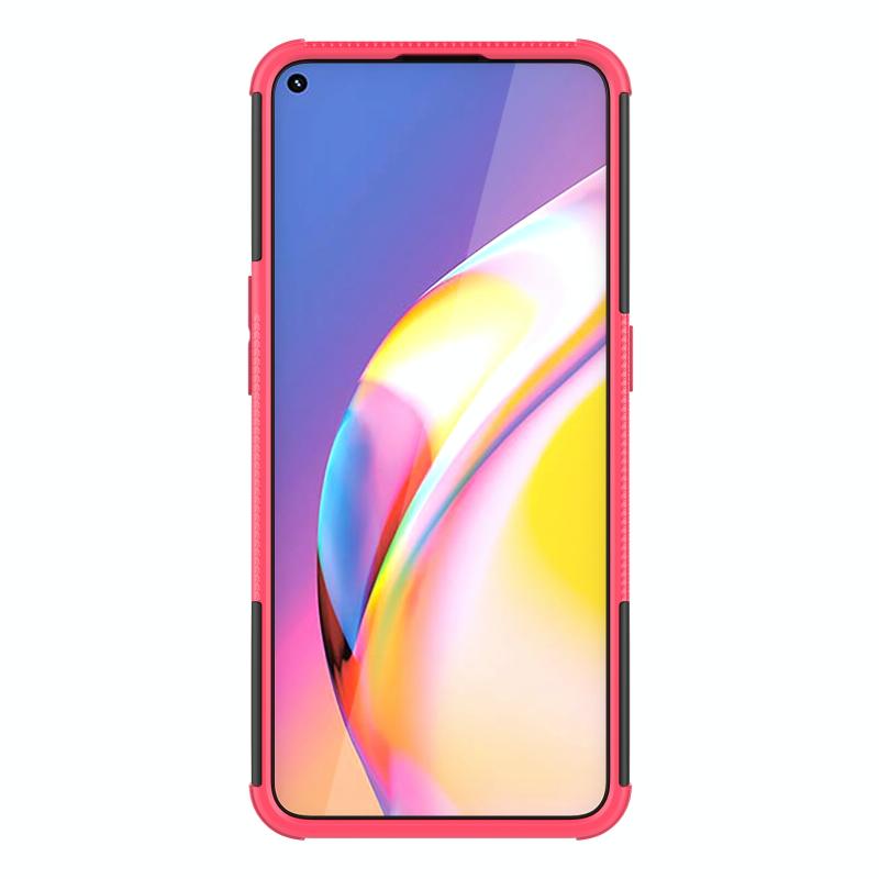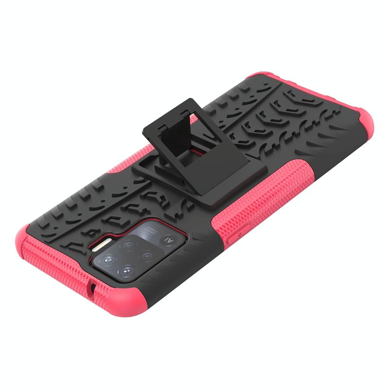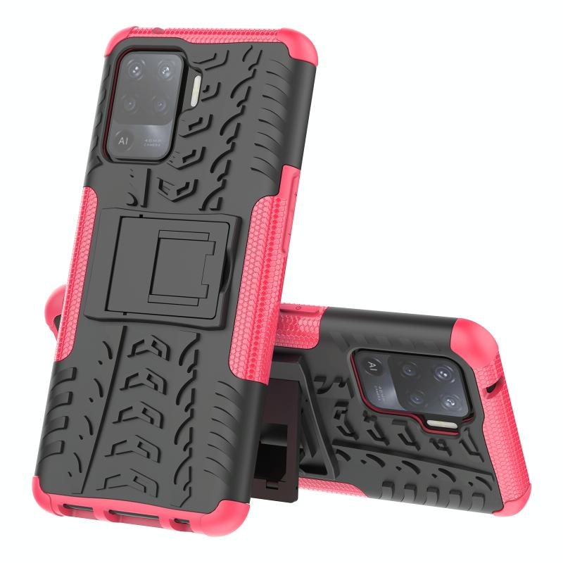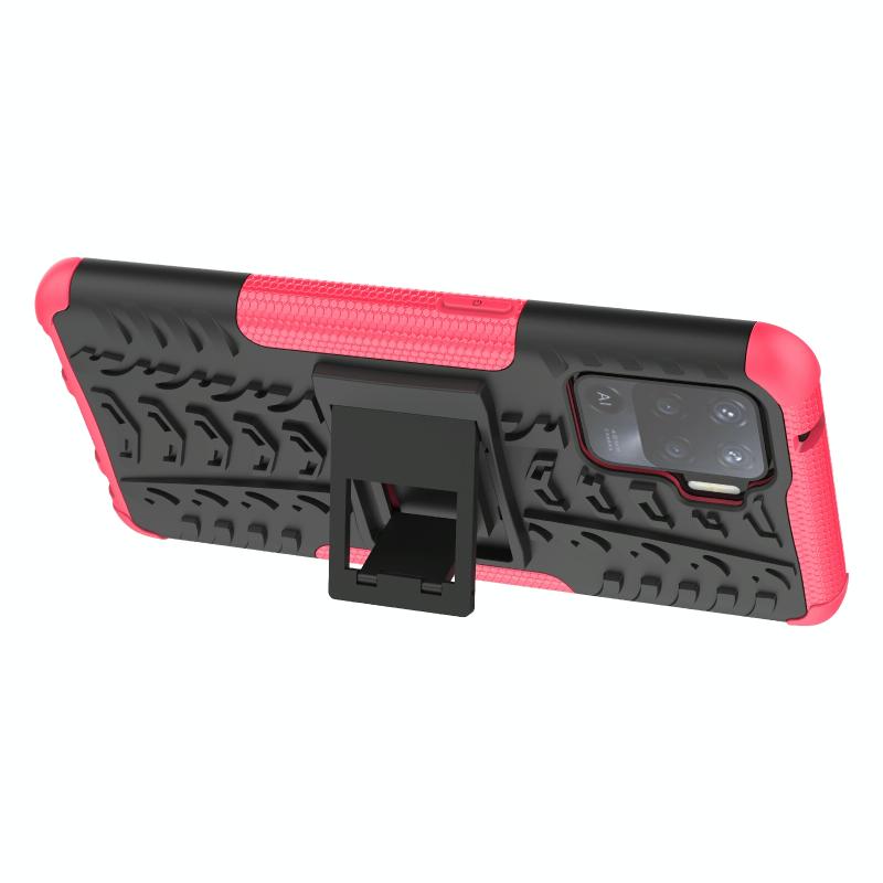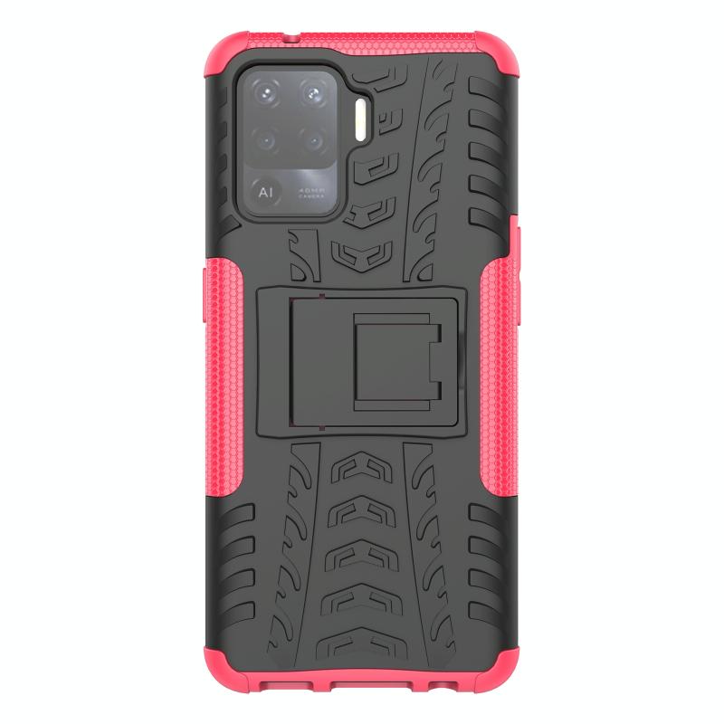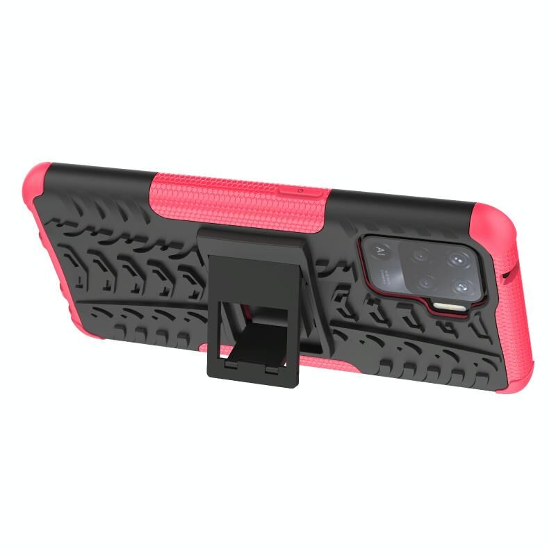 Θήκη προστασίας για OPPO A94 4G με υφή ελαστικού, αντικραδασμική από TPU+PC με βάση στήριξης (ρόζ)