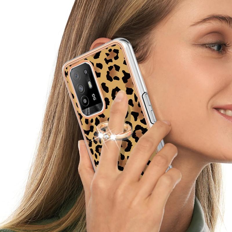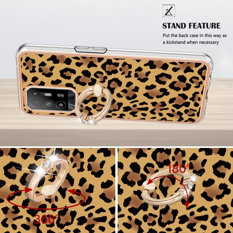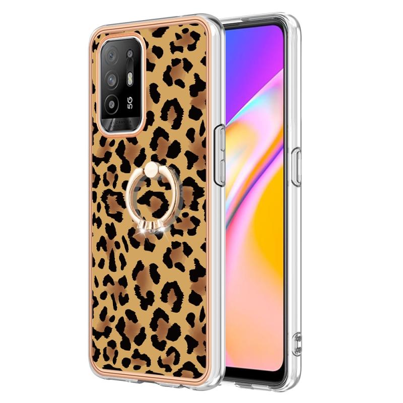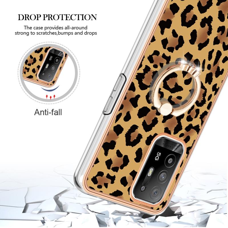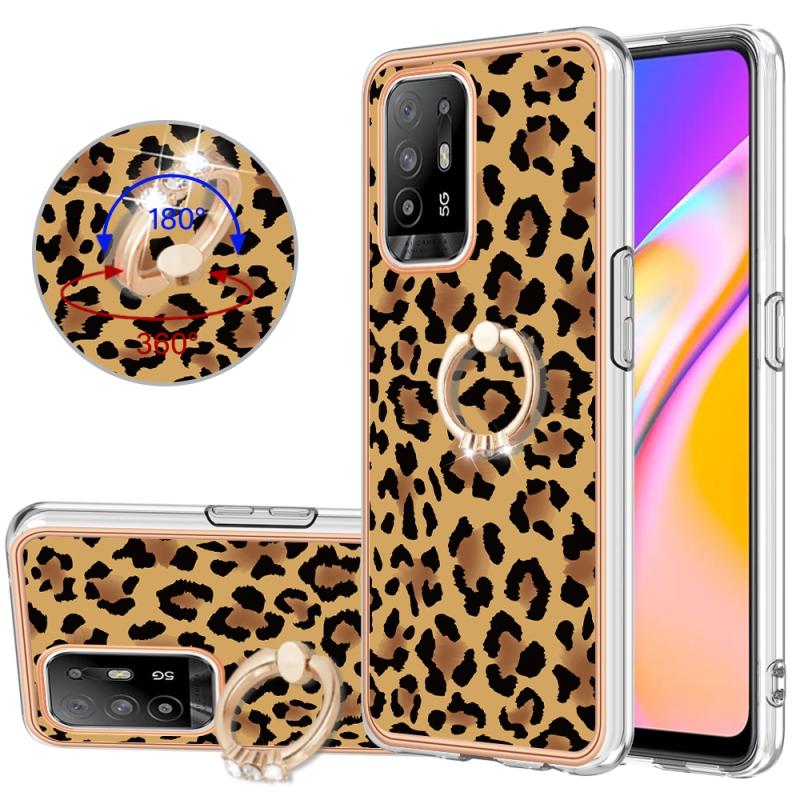 For OPPO A94 5G / A95 5G Electroplating Dual-side IMD Phone Case with Ring Holder(Leopard Print)