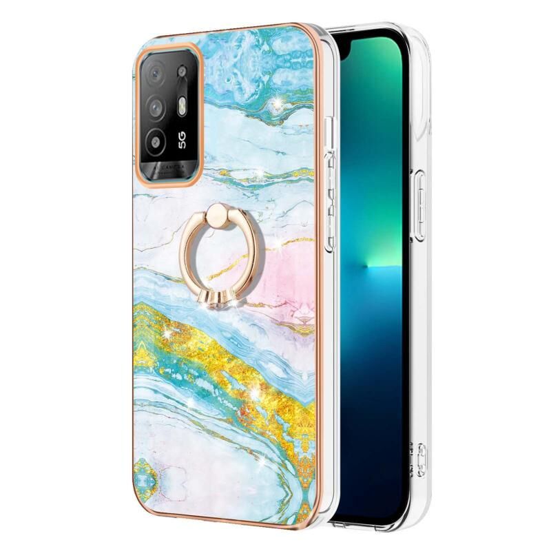 Θήκη τηλεφώνου OPPO A94 5G / A95 5G με Ηλεκτρολυτική μαρμάρινη υφή IMD TPU με Δακτύλιο Στήριξης (Μωβ 001)