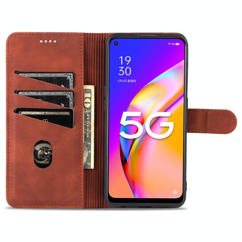 Για OPPO A94 5G / A95 5G / Reno5Z 5G / F19 Pro+ Θήκη Δέρματος Οριζόντιας Αναδίπλωσης με Υφή Μοσχαρίσιου Δέρματος AZNS, με Θήκες Καρτών & Στήριγμα & Πορτοφόλι (Μπλε) (AZNS)