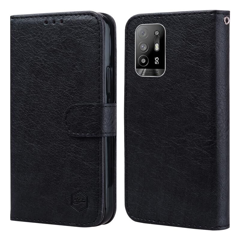 Θήκη κινητού τηλεφώνου για OPPO A94 5G / A95 5G με υφή δέρματος λάδι + PU + TPU (Μαύρο)
