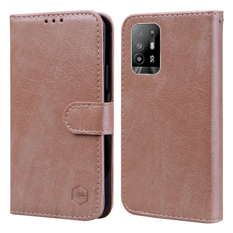 Θήκη τηλεφώνου για OPPO A94 5G / A95 5G με υφή δέρματος λάδι + PU + TPU (Σαμπάνια)