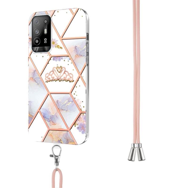 Θήκη τηλεφώνου TPU με σχέδιο μαρμάρου και λουλουδιών patchwork για OPPO A94 5G / A95 5G με κορδόνι (Imperial Crown)