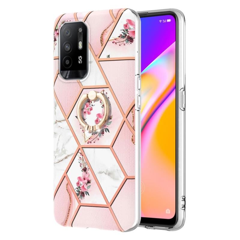 Θήκη για OPPO A94 5G / A95 5G με σχέδιο μαρμάρου και λουλουδιών, από TPU με δακτύλιο στήριξης (Ροζ Λουλούδι)