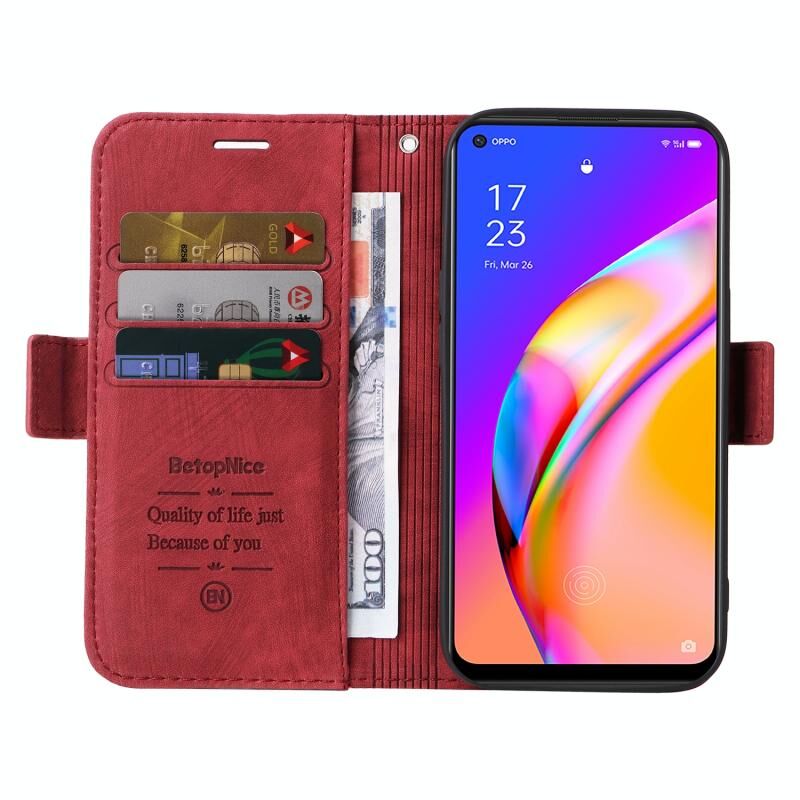 Για OPPO A94 5G BETOPNICE Διπλής όψης πόρπη δερμάτινη θήκη τηλεφώνου (κόκκινο) (BETOPNICE)