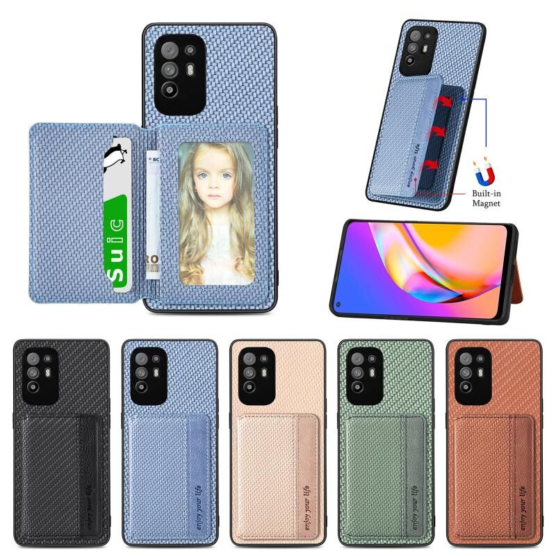 Θήκη τηλεφώνου με μαγνητική τσέπη για κάρτες από ανθρακονήματα για OPPO A94 5G (Μπλε)