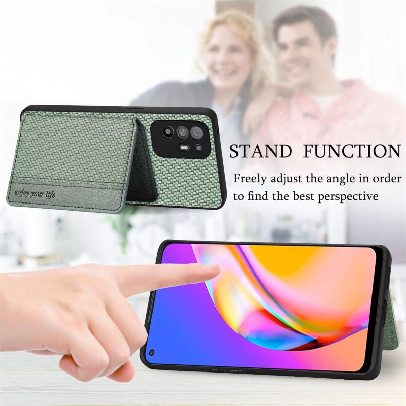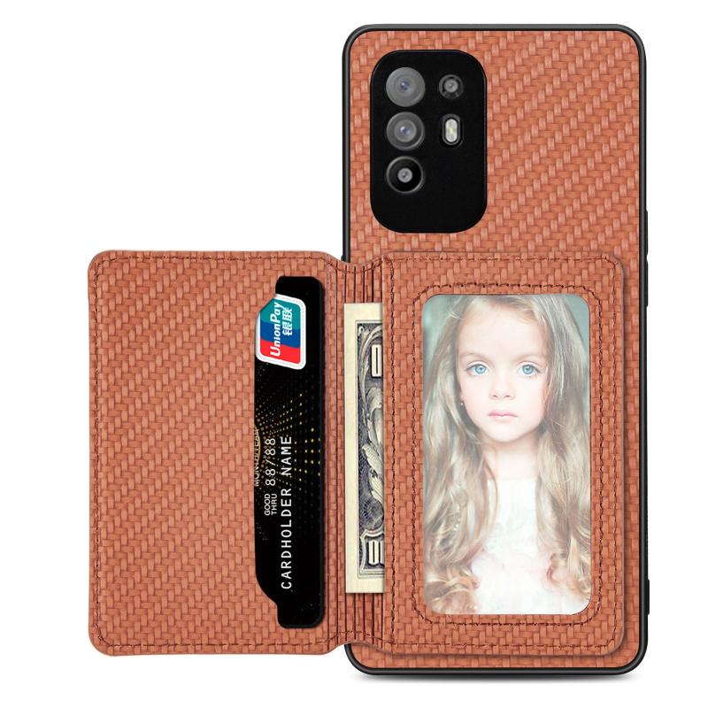 For OPPO A94 5G Carbon Fiber Magnetic Card Bag Phone Case(Brown)