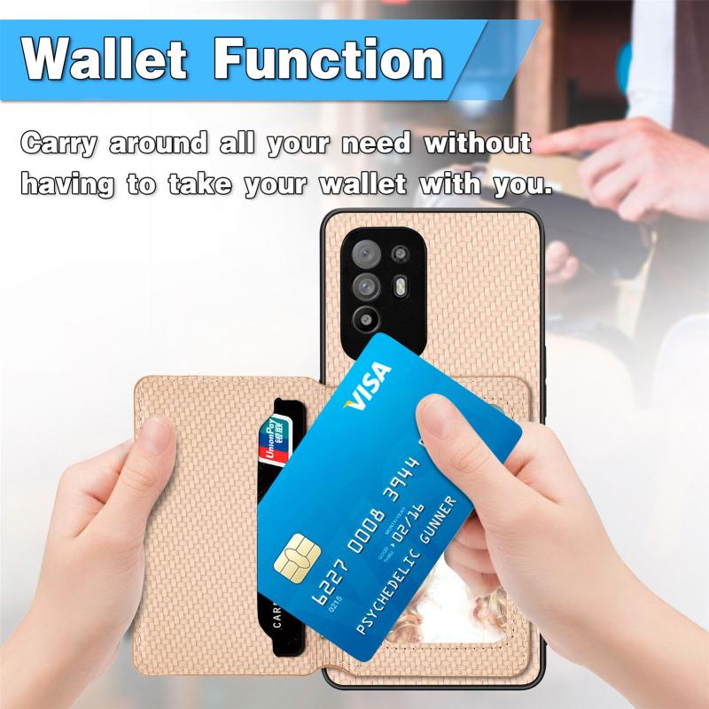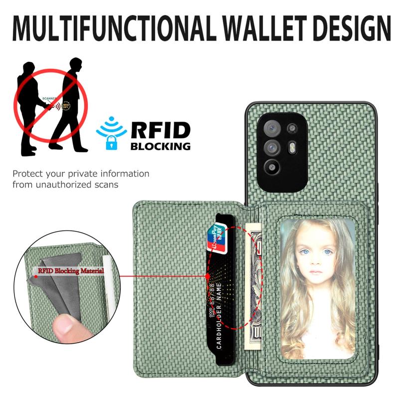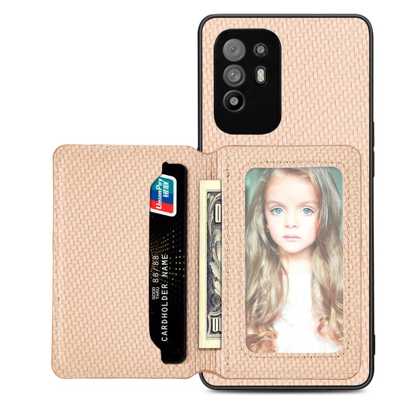 For OPPO A94 5G Carbon Fiber Magnetic Card Bag Phone Case(Khaki)