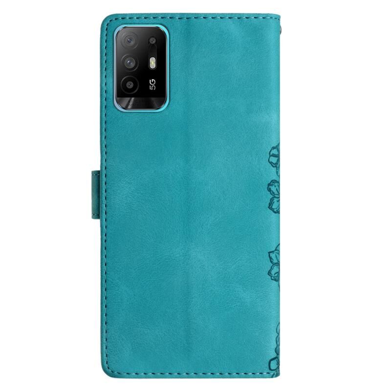 Θήκη τηλεφώνου OPPO A94 5G με ανάγλυφο PU, αίσθηση δέρματος, σχέδιο κερασιού και πεταλούδας (Μωβ)
