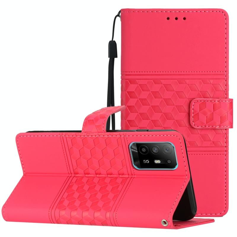 Για OPPO A94 5G Diamond ανάγλυφο δέρμα αίσθηση δερμάτινη θήκη τηλεφώνου με κορδόνι (κόκκινο)