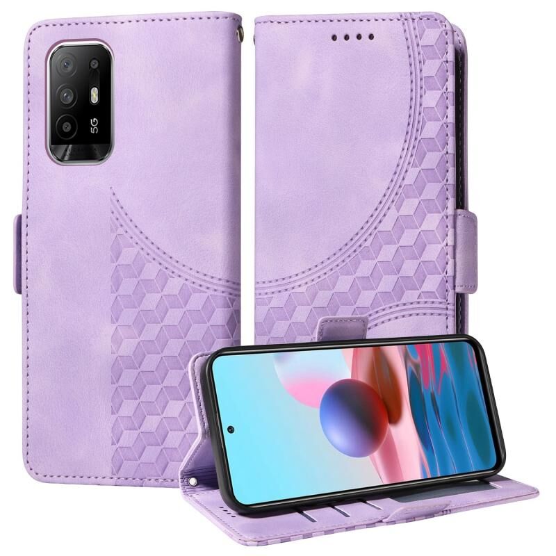Για OPPO A94 5G / F19 Pro + 5G ανάγλυφο Rhombus Starry δερμάτινη θήκη τηλεφώνου (μωβ)
