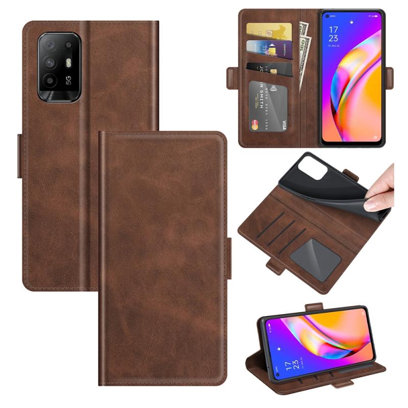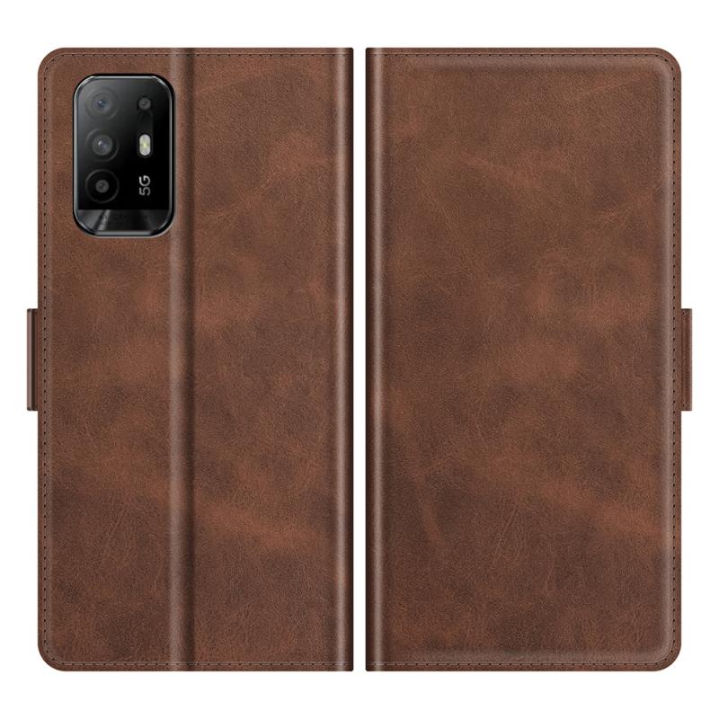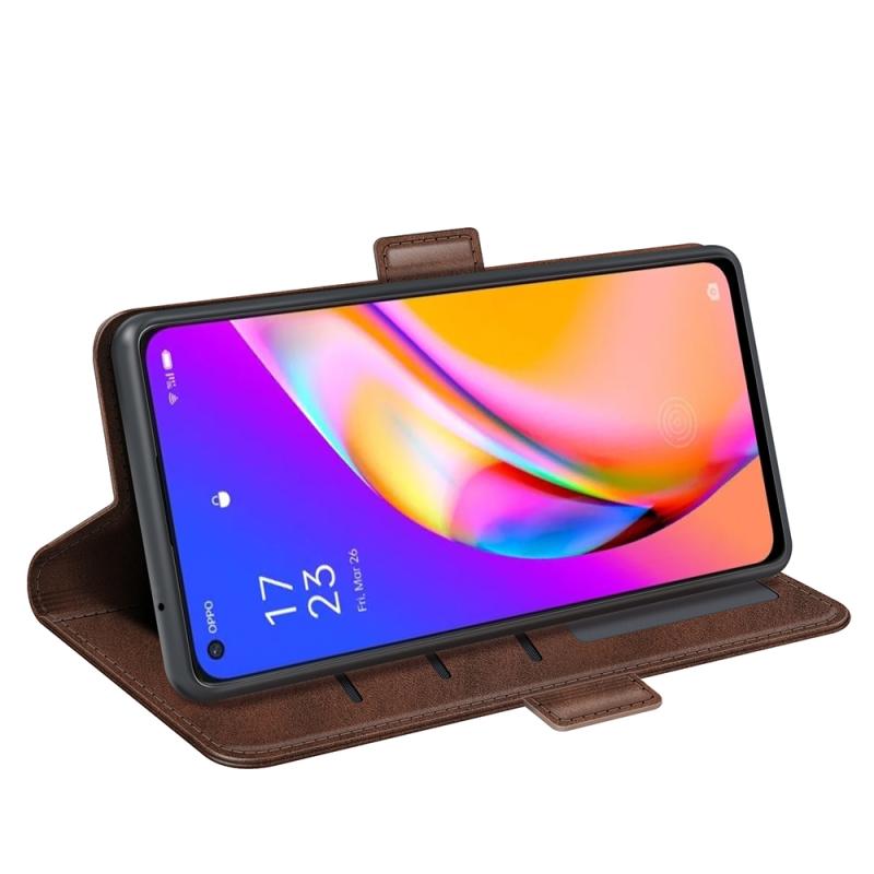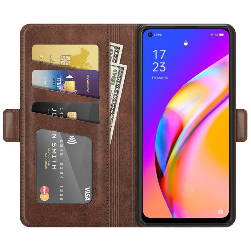 Θήκη δερμάτινη οριζόντιας αναδίπλωσης με μαγνητική αγκράφα διπλής όψης για OPPO A94 5G / F19 Pro+ 5G / Reno5 Z με βάση στήριξης & υποδοχές καρτών & πορτοφόλι (Καφέ)