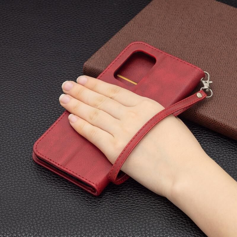 Για OPPO A94 5G/F19 Pro+ 5G/Reno5 Z Retro Lambskin Texture Pure Color Οριζόντια Flip PU δερμάτινη θήκη με θήκη & υποδοχές καρτών & πορτοφόλι & κορδόνι (κόκκινο)