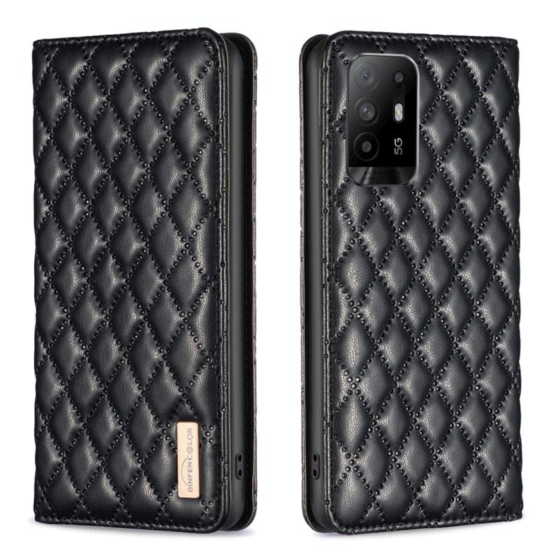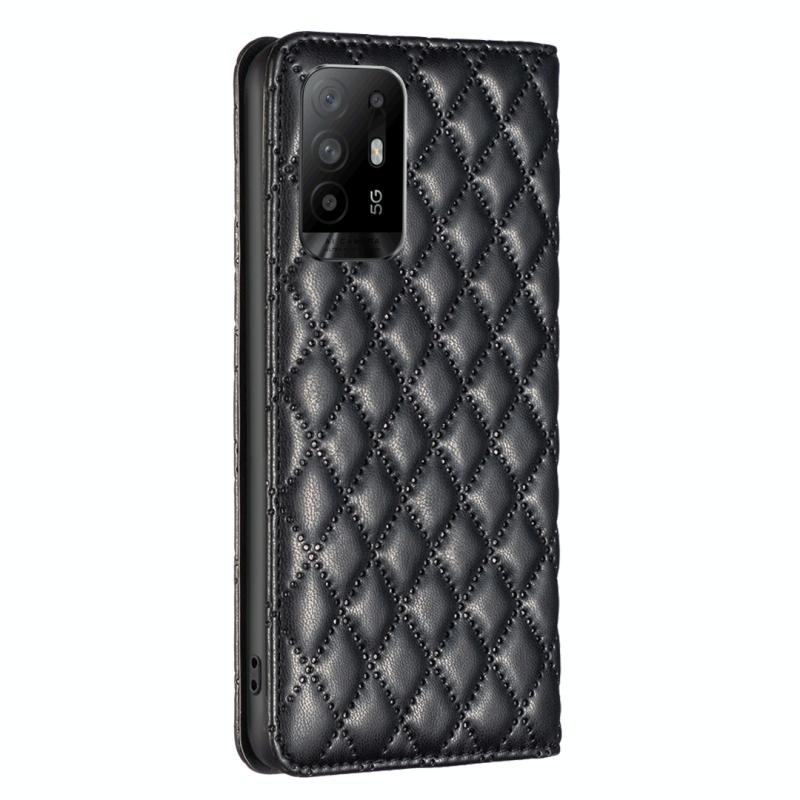 Θήκη τηλεφώνου τύπου flip από δέρμα με μαγνητικό σχέδιο διαμαντόπλεγμα για OPPO A94 5G / F19 Pro+ (Μαύρο)