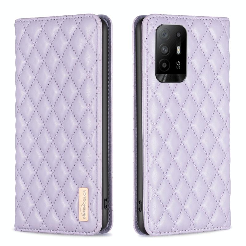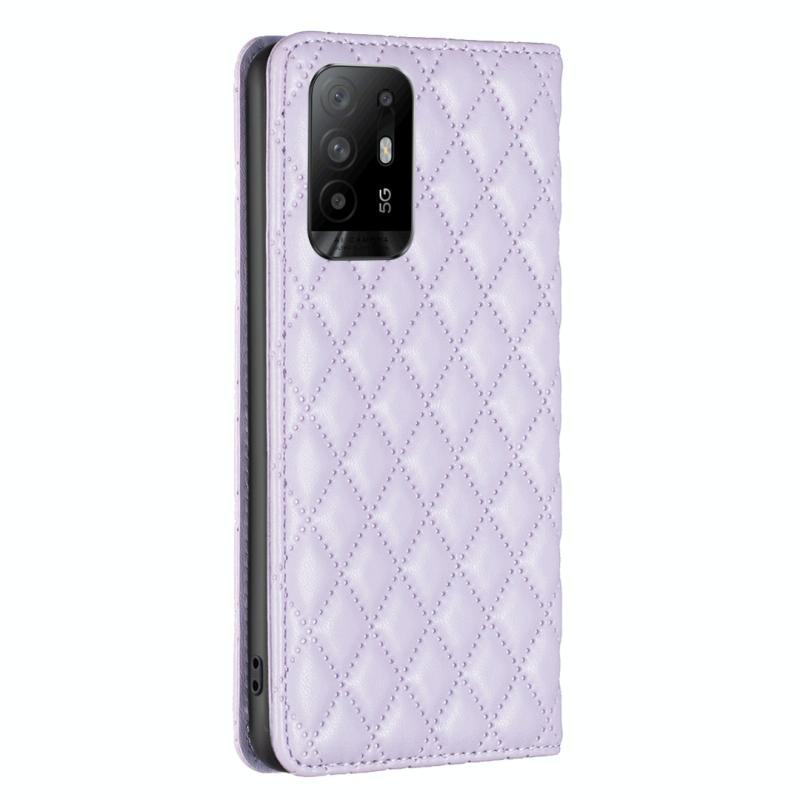 Θήκη τηλεφώνου τύπου flip από δέρμα με μαγνητικό σχέδιο διαμαντόπλεγμα για OPPO A94 5G / F19 Pro+ (Μωβ)
