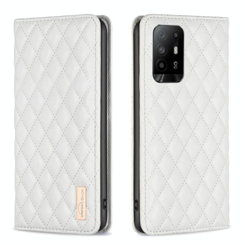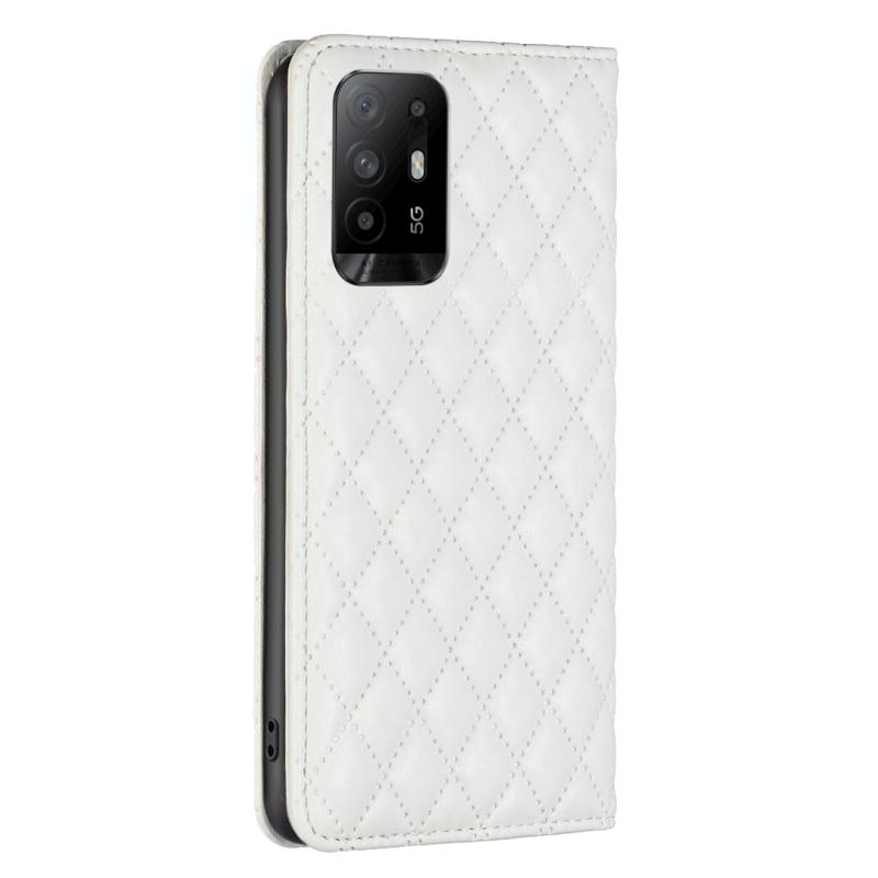 Θήκη τηλεφώνου τύπου flip από δέρμα με μαγνητικό σχέδιο διαμαντόπλεγμα για OPPO A94 5G / F19 Pro+ (Λευκό)