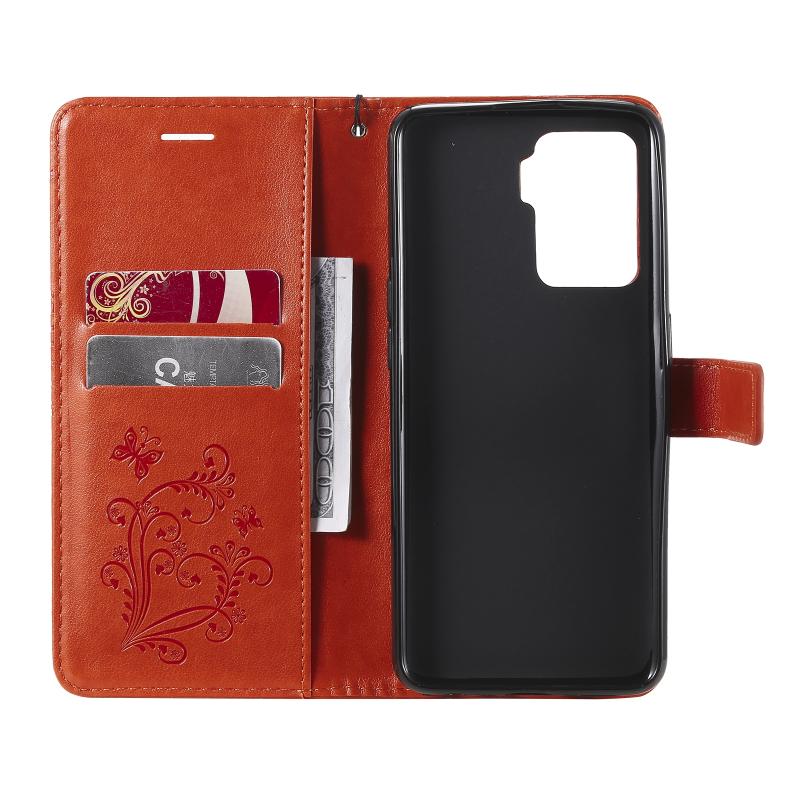 Θήκη για OPPO A94 5G / F19 Pro / Reno 5F με εκτυπωμένο σχέδιο πεταλούδας, οριζόντια αναδιπλούμενη από δερματίνη PU με βάση στήριξης & θήκες καρτών & πορτοφόλι & κορδόνι (Χρυσό Ρόδι)