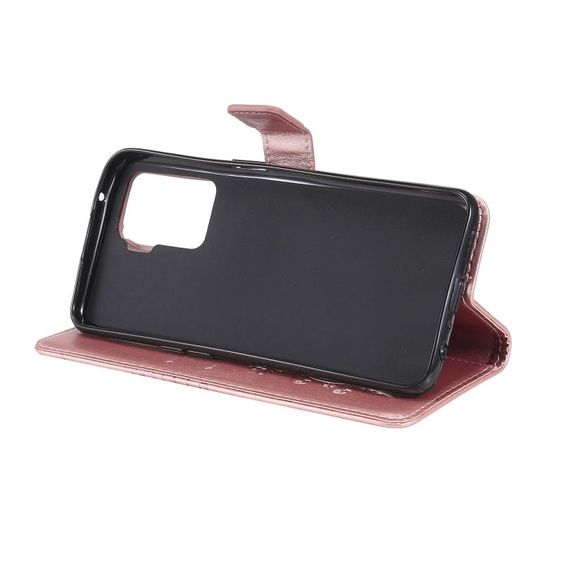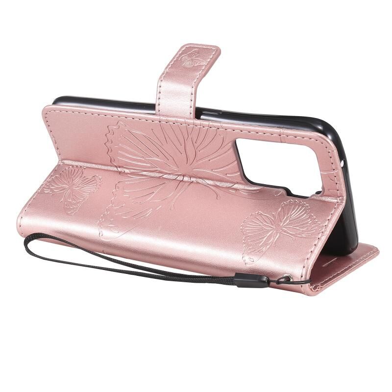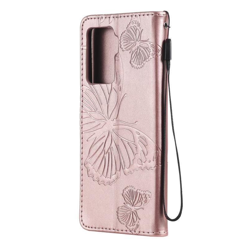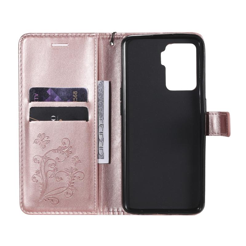 For OPPO A94 5G / F19 Pro / Reno 5F Pressed Printing Butterfly Pattern Horizontal Flip PU Leather Case with Holder & Card Slots & Wallet & Lanyard(Rose Gold)