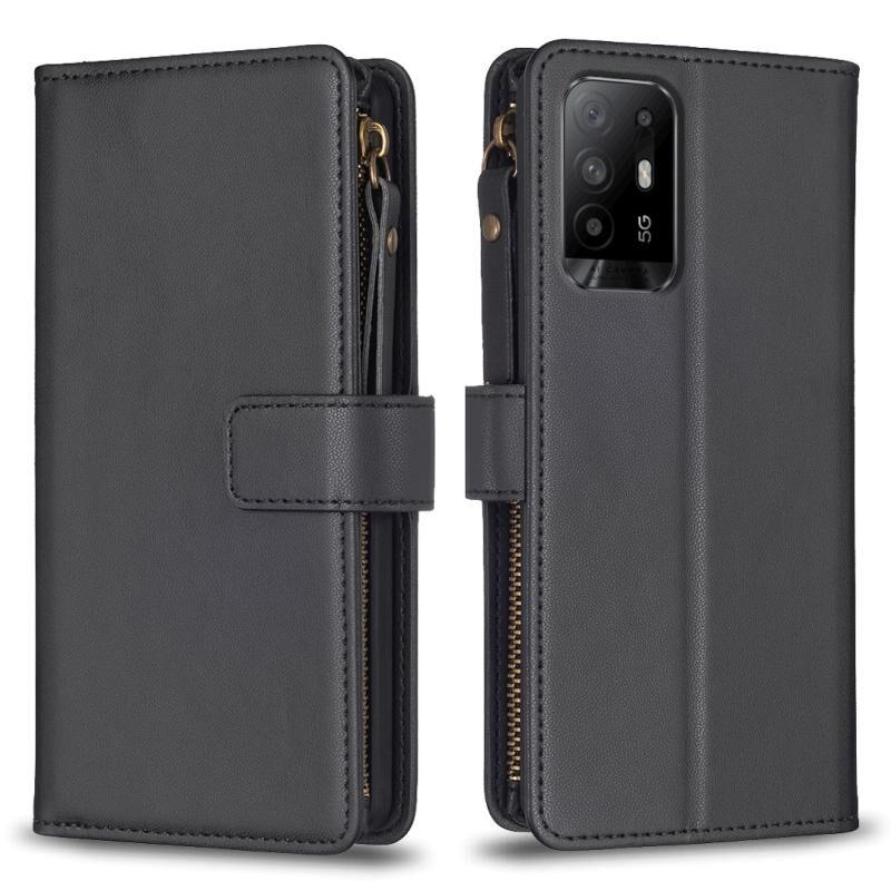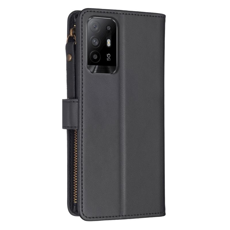 Για OPPO A94 5G / F19 Pro+ / Reno5 Z 5G Θήκη Τηλεφώνου από Δέρμα με Γυριστή Πλάτη και 9 Θήκες Καρτών (Μαύρο)