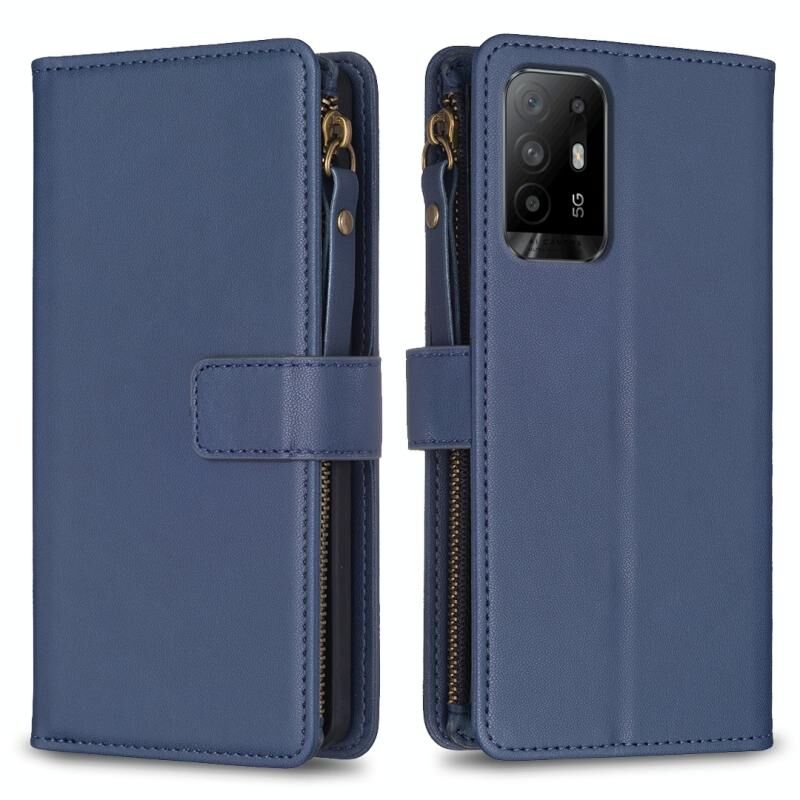 Για OPPO A94 5G / F19 Pro+ / Reno5 Z 5G Θήκη Τηλεφώνου από Δέρμα με Γυριστή Πλάτη και 9 Θήκες Καρτών (Μπλε)