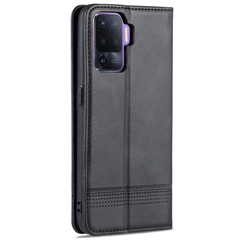 Θήκη δέρματος οριζόντιας αναδίπλωσης με μαγνητικό κλείσιμο και υφή μοσχαριού για OPPO A94 / F19 Pro / Reno5 Lite AZNS, με θήκες για κάρτες, στήριξη & πορτοφόλι (Σκούρο Καφέ) (Μαύρο)