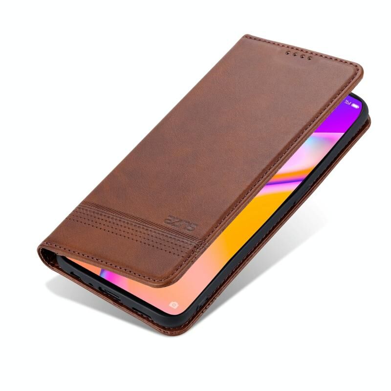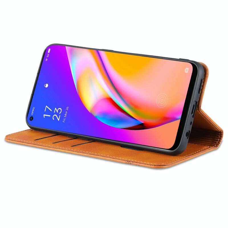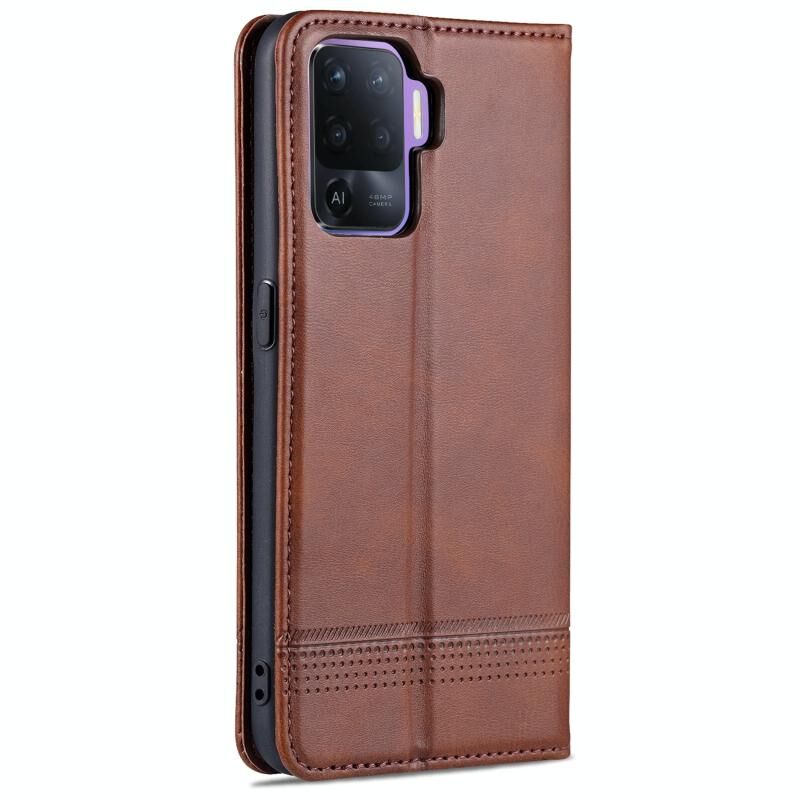Θήκη δέρματος οριζόντιας αναδίπλωσης με μαγνητικό κλείσιμο και υφή μοσχαριού για OPPO A94 / F19 Pro / Reno5 Lite AZNS, με θήκες για κάρτες, στήριξη & πορτοφόλι (Σκούρο Καφέ) (Σκούρο καφέ)
