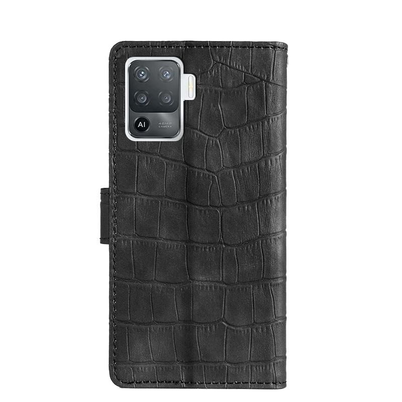 Για OPPO A94 / F19 Pro Skin Feel Crocodile Texture Μαγνητικό κούμπωμα Οριζόντια Flip PU δερμάτινη θήκη με κάτοχο & υποδοχές καρτών & πορτοφόλι (Μαύρο)