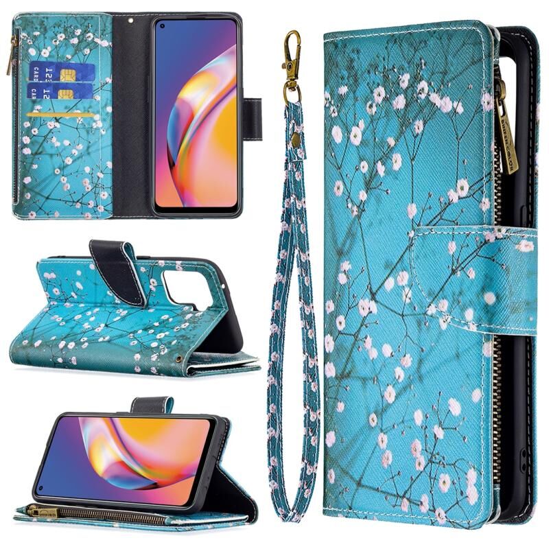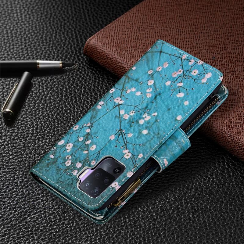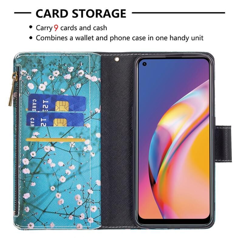 Θήκη δέρματος οριζόντιας αναδίπλωσης με φερμουάρ και σχέδιο ζωγραφικής για OPPO A94/Reno5 F/F19 Pro με βάση για κάρτες και πορτοφόλι (Κόκκινο)