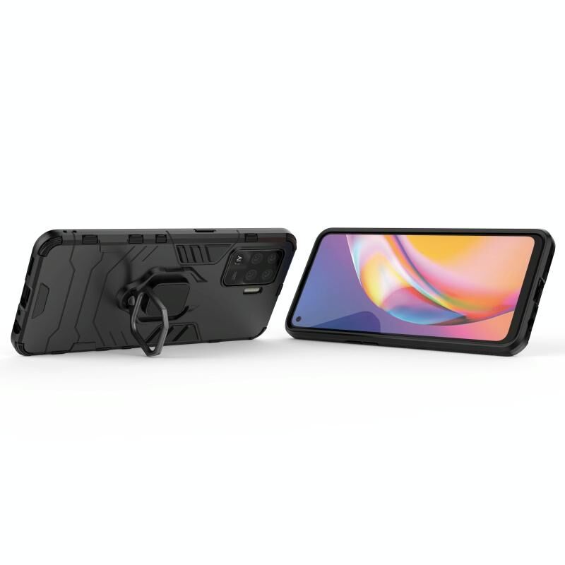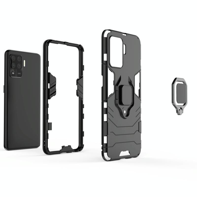 For OPPO A94 Shockproof PC + TPU Protective Case with Magnetic Ring Holder(Black)